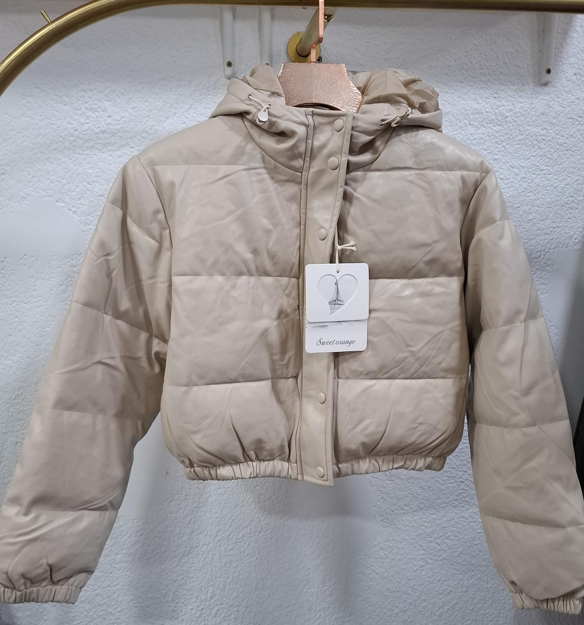 Chaqueta Sweet Orange disponible en negro y beige, ideal para entretiempo, con diseño moderno y ligero.